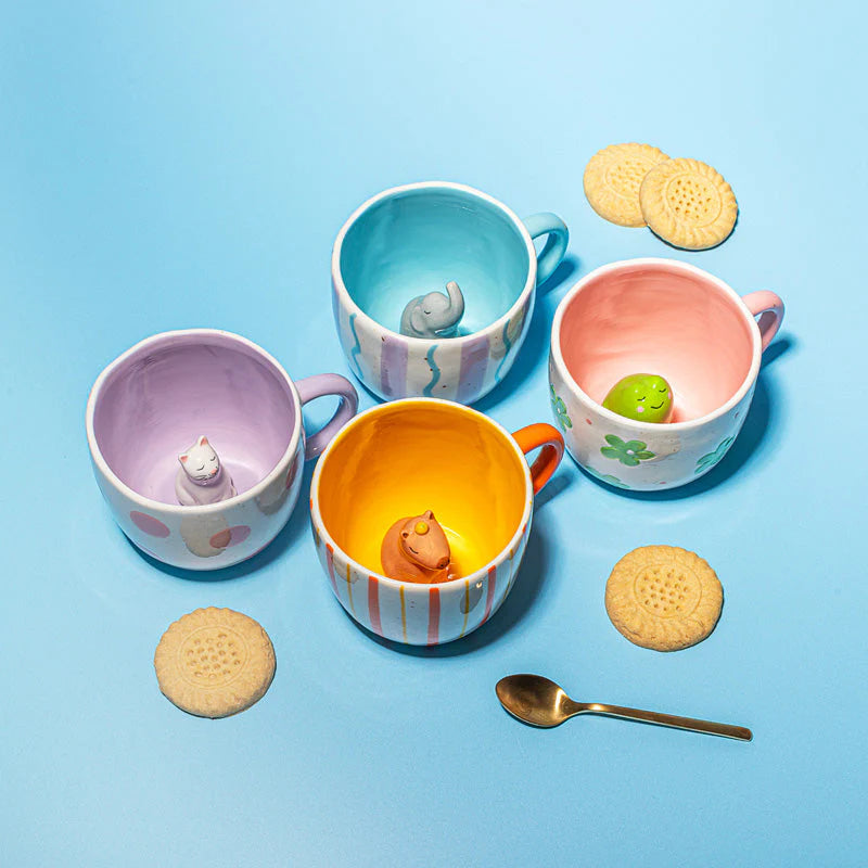 Slurp, slurp… hallo daar! Wanneer je mok leeg is, begroet een vrolijke kat, koe of ander vrolijk dier je vanaf de bodem. Een speelse mok voor groot en klein met hidden surprise! Deze mok zorgt voor een 'instant' glimlach op ieders gezicht.