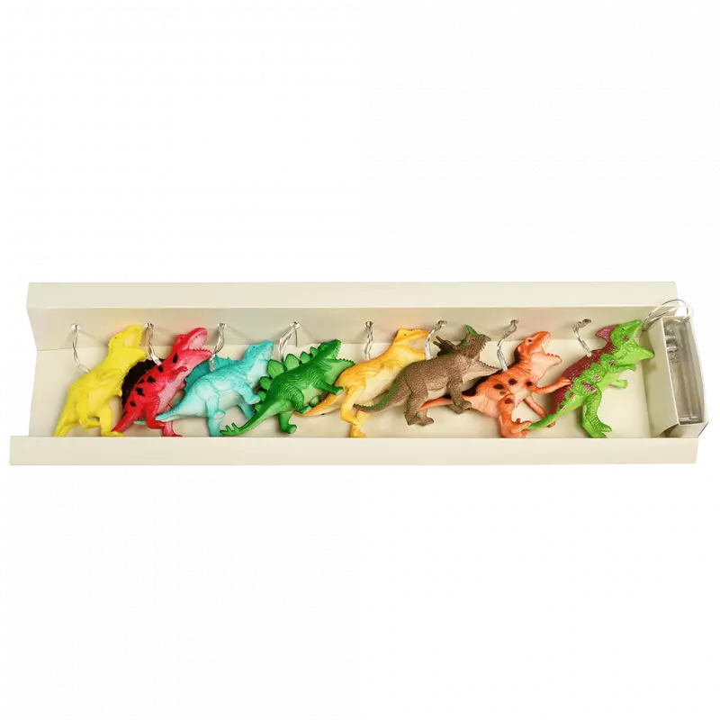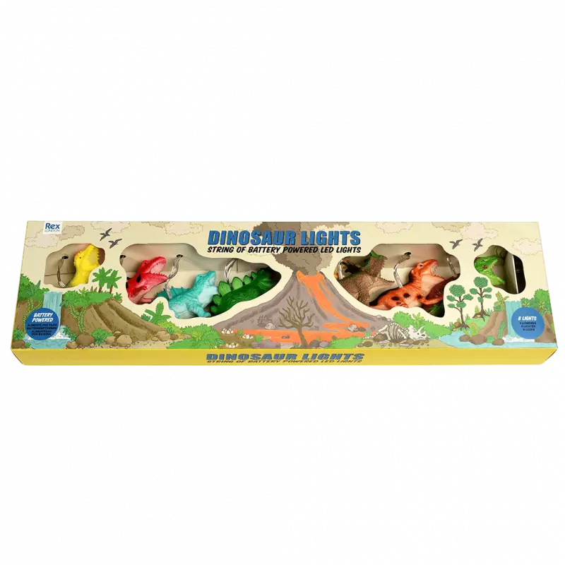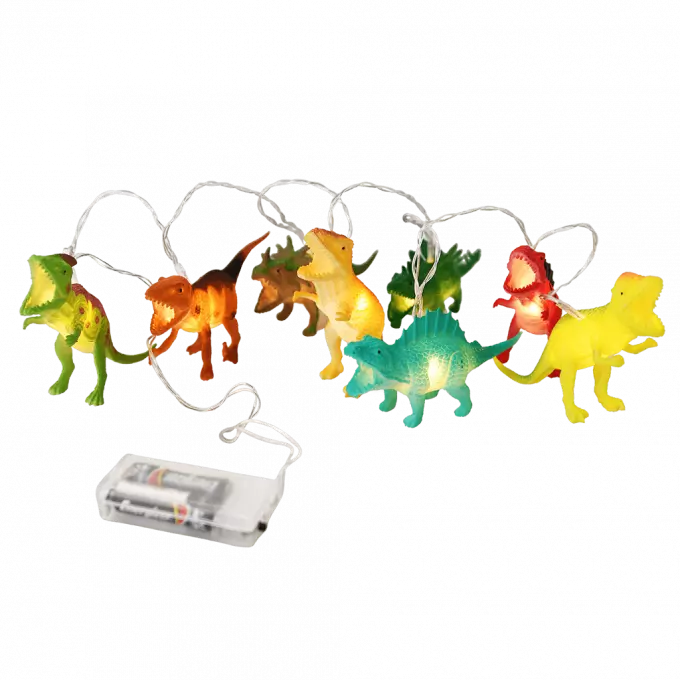 Een echte must-have voor elke jonge dinosaurus fan! Deze lichtslinger met LED's geven een kleurrijk effect en toveren elke bijzondere plek of kamer om in dinoland. De lichtslinger werkt op batterijen en kan overal worden opgehangen zonder snoer.